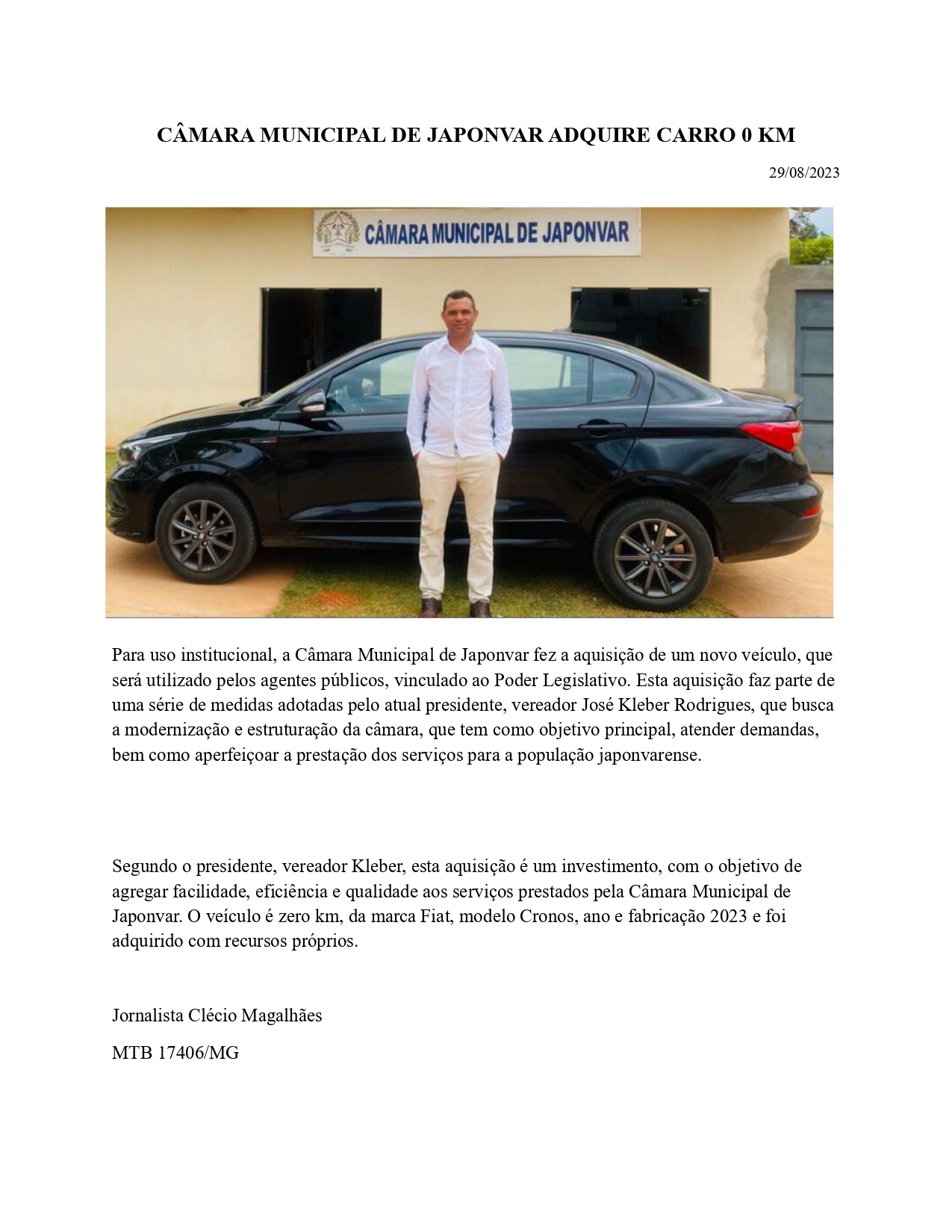 CÂMARA MUNICIPAL DE JAPONVAR ADQUIRE CARRO 0 KM