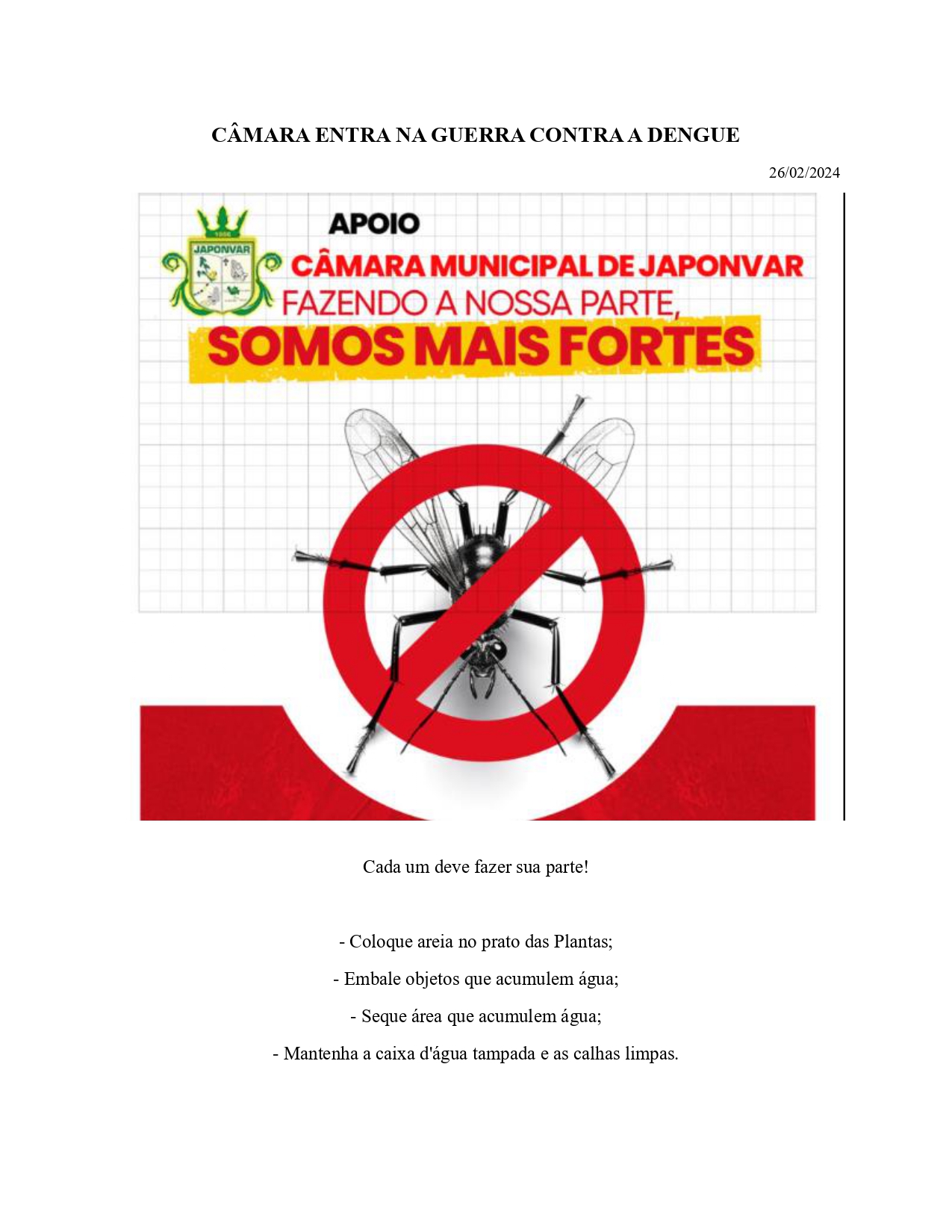 CÂMARA ENTRA NA GUERRA CONTRA A DENGUE