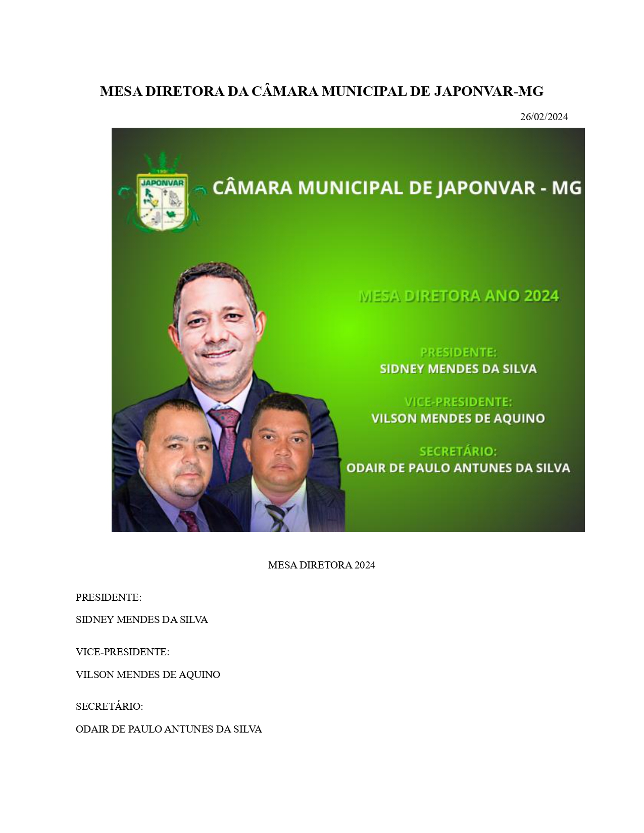 MESA DIRETORA DA CÂMARA MUNICIPAL DE JAPONVAR-MG